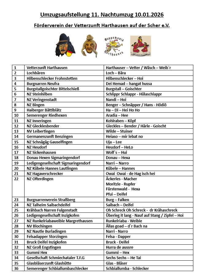 Wir freuen uns euch alle wieder am 10.01.2026 zu unserem 11. Nachtumzug in Harthausen a. d. Scher begrüßen zu dürfen.